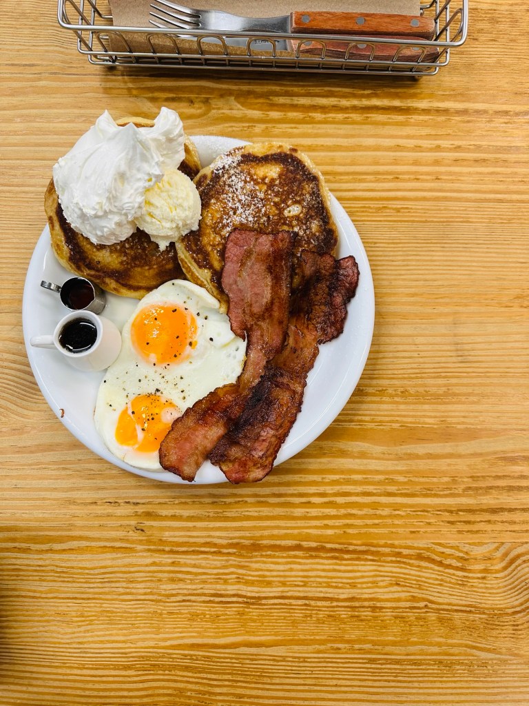 Lately I have been craving a diner breakfast. Delighted to have a lumberjack pancakes plate with eggs and bacon that brought me back to being in the US. I added whipped cream, because why not?🥰