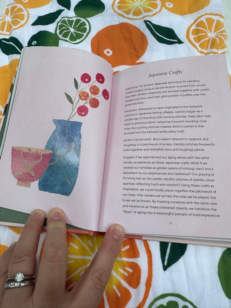 I loved the many connections to Japan in the book including sashiko and kintsugi – for giving new life to damaged items and wabi sabi – celebrating minor flaws.