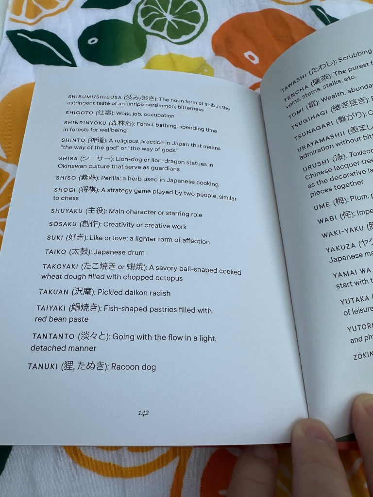 Each chapter is a page or two introducing many topics. Okinawans why it’s believed they live some of the longest lives on the planet, kansha – gratitude, kampō – ancient Japanese herbs and healing practices, and mokuteki – having purpose in life.